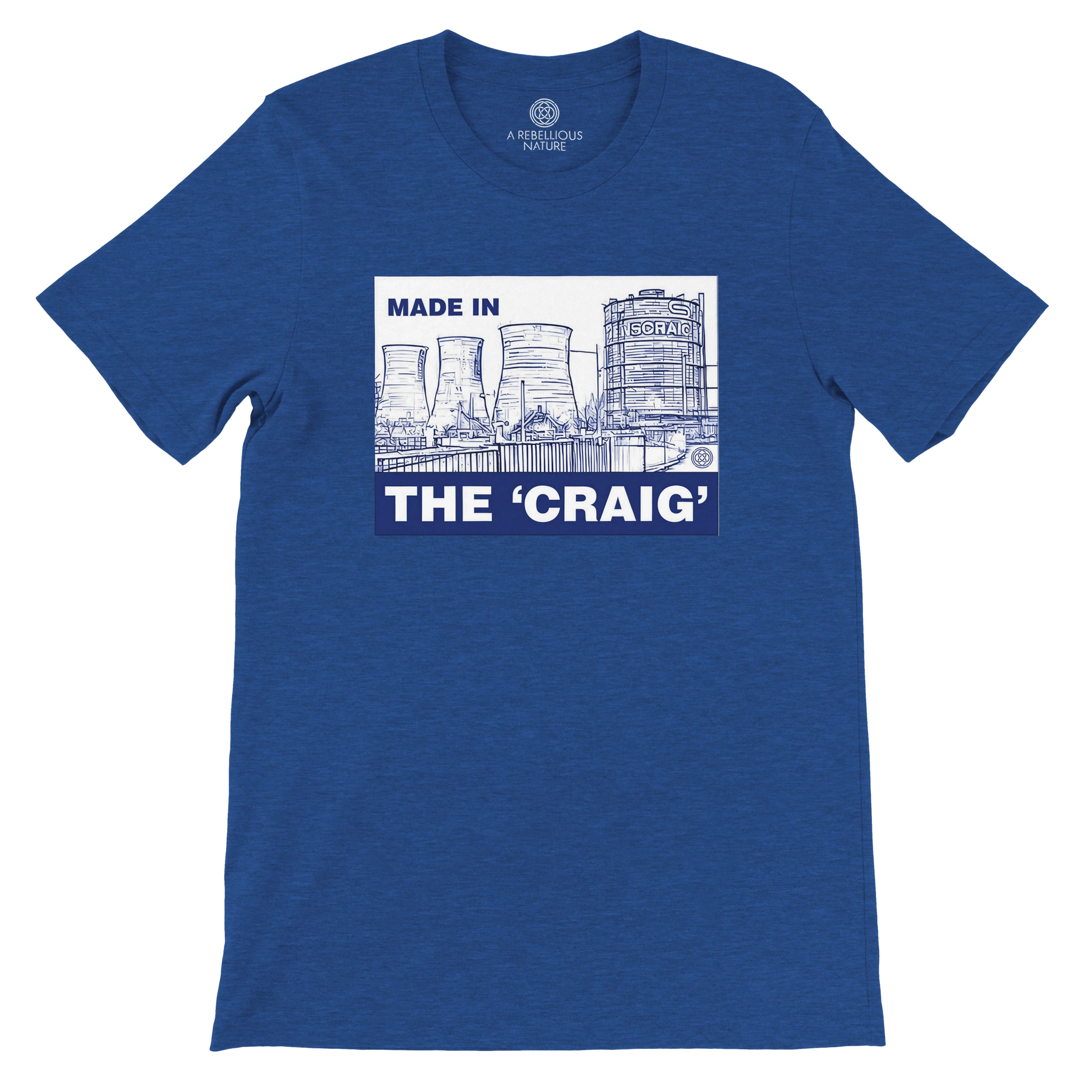 The Made In The ‘Craig’ T-Shirt from A Rebellious Nature is a bold celebration of heritage, resilience, and identity. Inspired by the legacy of the Ravenscraig steelworks in Motherwell, this t-shirt honours the generations who worked and lived around the site. Ravenscraig was once one of Europe’s largest steel plants, a landmark that shaped families, communities, and Scotland’s industrial history. Though the steelworks closed its doors, its spirit lives on, and this design is a reminder that the ‘Craig remains a powerful symbol of pride and belonging.